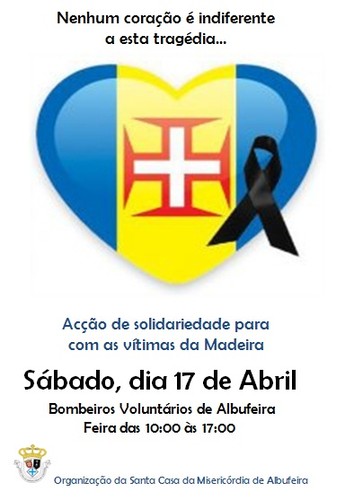 Tendo em vista a angariação de fundos para apoio das famílias vitimadas pela catástrofe que se abateu sobre a Madeira, a Santa Casa da Misericórdia de Albufeira leva a cabo, no próximo sábado, uma feira de solidariedade que decorrerá no Quartel dos Bombeiros Voluntários de Albufeira.
