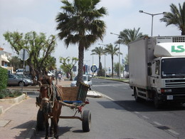 Albufeira é decididamente uma terra de contrastes, onde o velho e o novo se cruzam por vezes. Como é o caso dos dois veículos de carga que a imagem documenta. Quem não parece muito satisfeito é o equídeo, temendo talvez que a autoridade apareça e lhe aplique uma multa por estacionamento em contravenção.