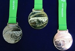 "Bom dia, as medalhas foram produzidas pela empresa Savvy Sports a partir de uma ideia dos membros da Organização Local e seguem a linha habitual em eventos desta natureza. A imagem em concreto é o “ex-libris” de Albufeira (vista do Pau da Bandeira) e foi adaptada a partir de uma fotografia do Rui Gregório. A Savvy é a fornecedora de medalhas para vários eventos da IAAF e da European Athletics, tendo trabalhado em eventos como os Jogos Olímpicos de Pequim, em 2008 e os Jogos Olímpicos de Inverno de Vancouver, em 2010".
